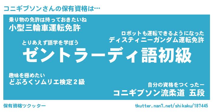 | 男性向けラノベタイトル風あだ名 | 『コニギブソンの憂鬱』 |