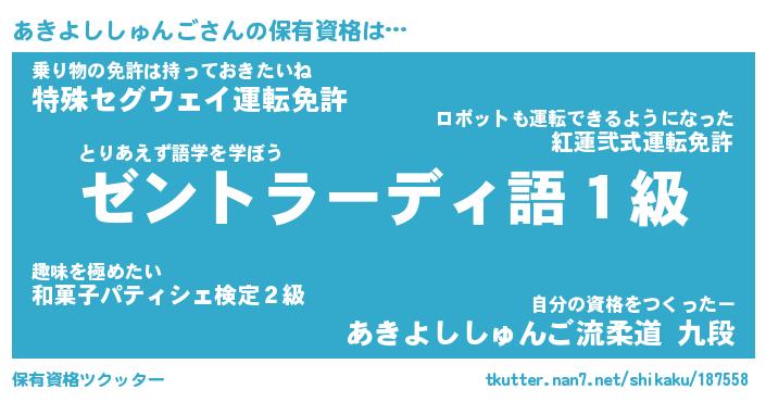 | 肩書あだ名 | 『あきよししゅんご社長』 |