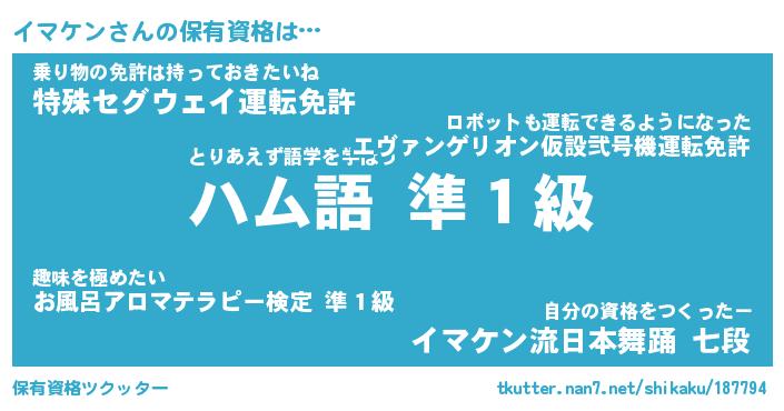 | 意味不明あだ名 | 『ペロリンイマケン』『永久保存イマケン』 |