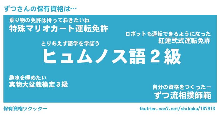 | ファンタジー風あだ名 | 『ズツフェル』『エターナルズツー』 |