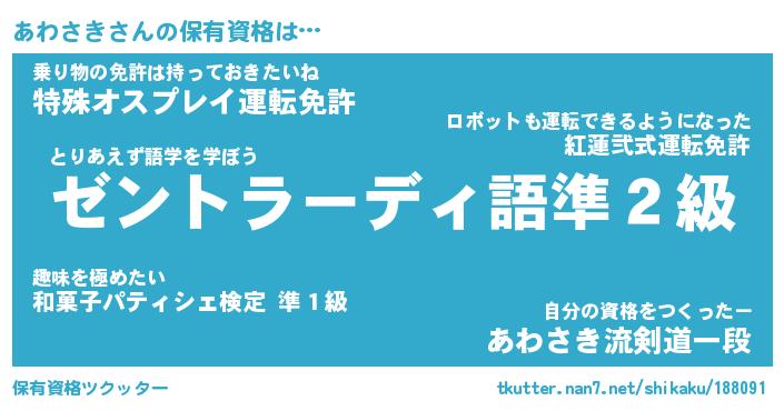| ファンタジー風あだ名 | 『アワフェル』『エターナルアワサキー』 |