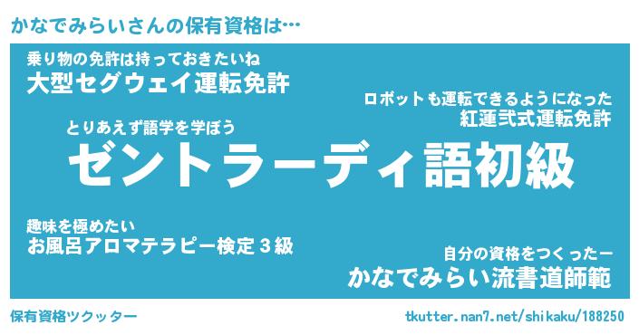 | 胡散臭い通販商品みたいなあだ名 | 『モテモテ間違いなし霊験あらたかなお札…その名も「かなでみらい」』 |