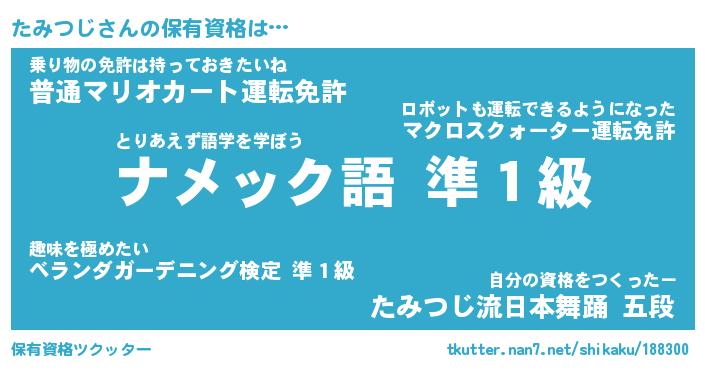 | ヒーロー風カッコイイあだ名 | 『スーパータミツジ』『天弓騎士タミ』 |