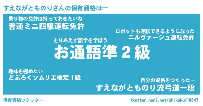 | ヒーロー風カッコイイあだ名 | 『スーパースエナガトモノリ』 |