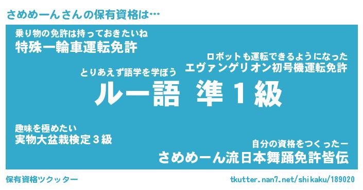 | ファンタジー風あだ名 | 『サメフェル』『エターナルサメメーンー』 |