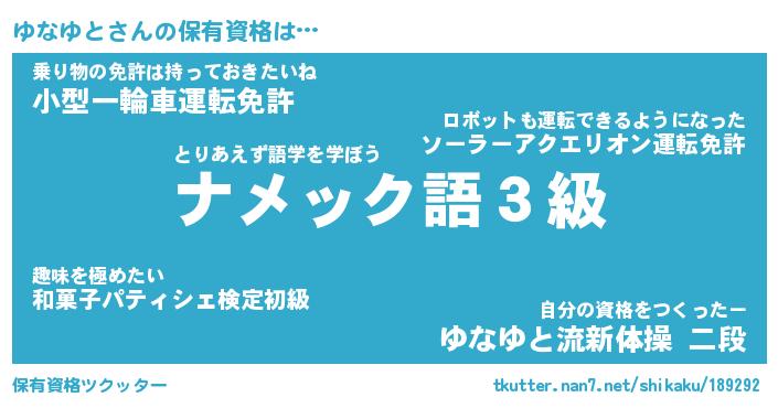 | 意味不明あだ名 | 『ペロリンゆなゆと』『永久保存ゆなゆと』 |
