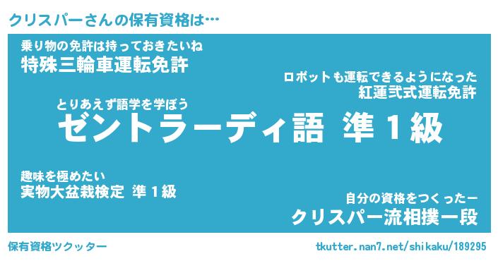 | 意味不明あだ名 | 『ペロリンクリスパー』 |