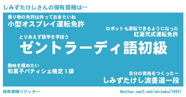 | 肩書あだ名 | 『しみずたけし御曹司』 |