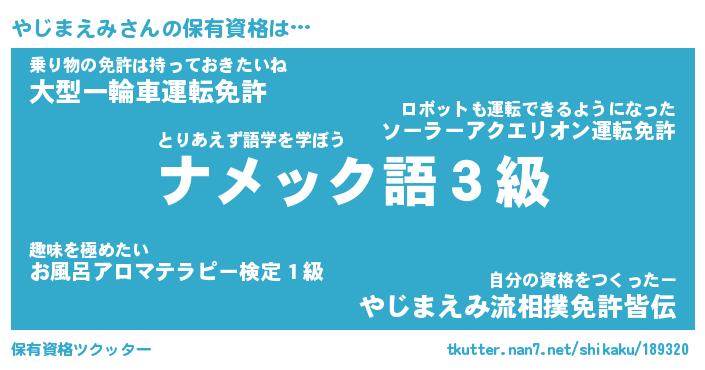 | ファンタジー風あだ名 | 『ヤジフェル』『エターナルヤジマエミー』 |