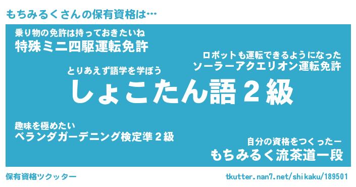 | 伝説のあだ名 | 『封印されし竜騎士もちみるく』 |