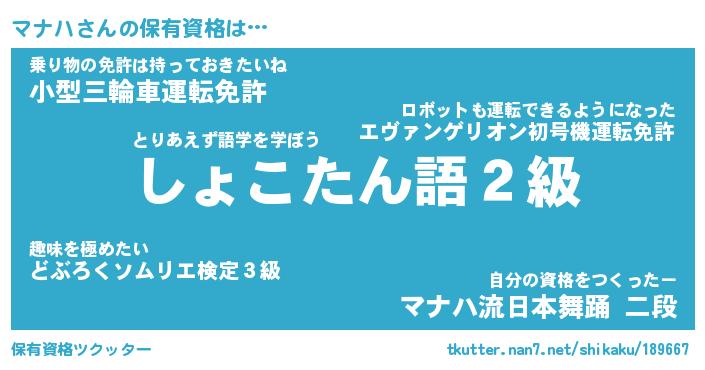 | ファンタジー風あだ名 | 『マナフェル』『エターナルマナハー』 |