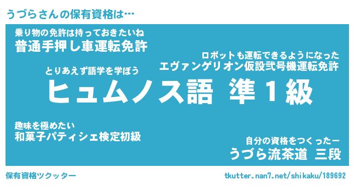 | ファンタジー風あだ名 | 『ウヅフェル』『エターナルウヅラー』 |