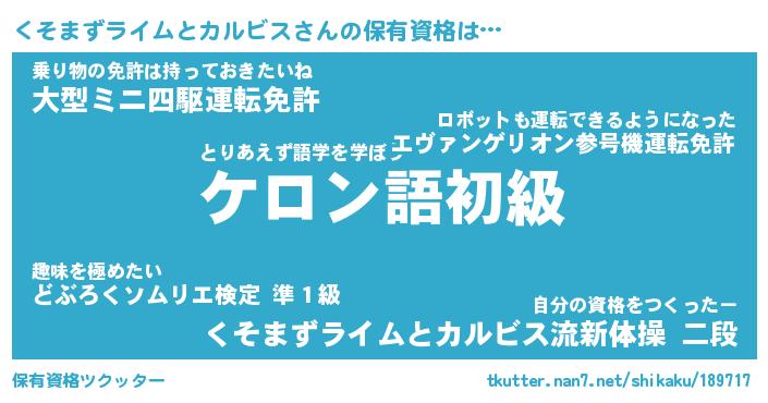 | ツイッター | くそまずライムとカルビスさんのツイッターID『kikurage_nyan』 |