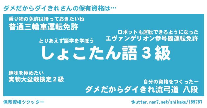 | 伝説のあだ名 | 『封印されし傭兵ダメだからダイきれ』 |