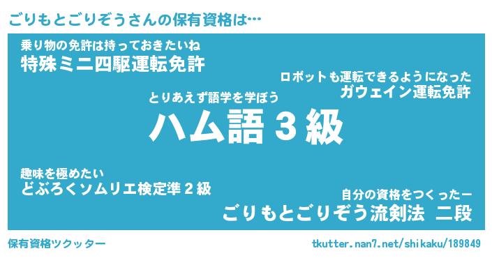 | 自動車の名前っぽいあだ名 | 『ゴリティマ』『ゴクア』『ヴィッゴ』 |