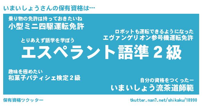 | ポケモン風あだ名 | 『イマチュウ』『イマイダネ』 |