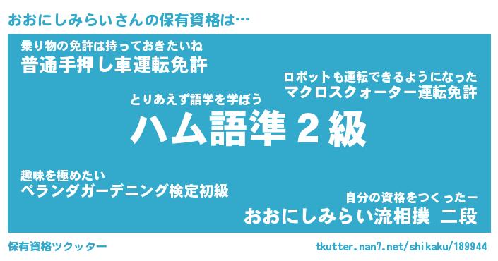 | 欧米人風あだ名 | 『マイケルおおにしみらい』 |