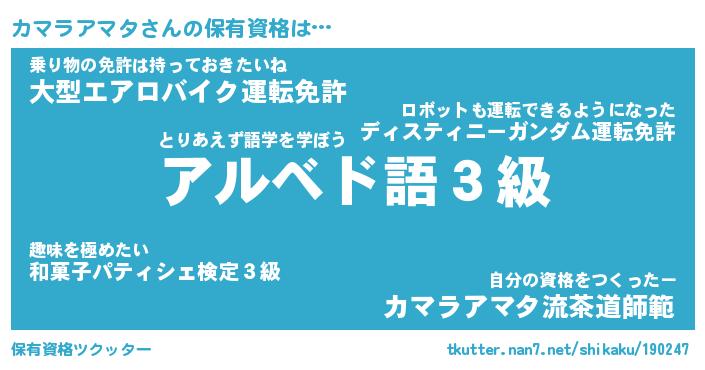 | 自動車の名前っぽいあだ名 | 『カマティマ』『カスラー』 |