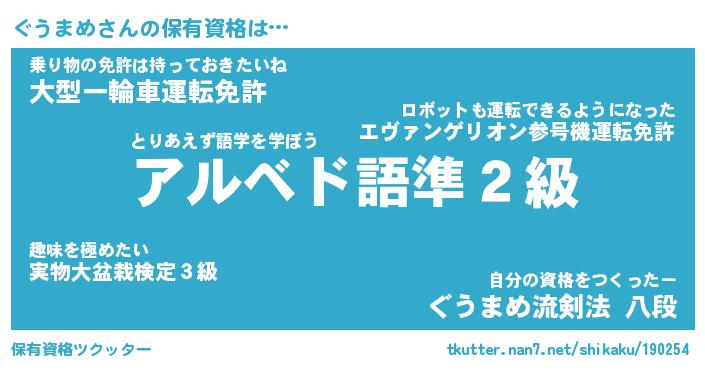 | ファンタジー風あだ名 | 『グウフェル』『エターナルグウマメー』 |