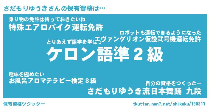 | 肩書あだ名 | 『さだもりゆうき御曹司』 |