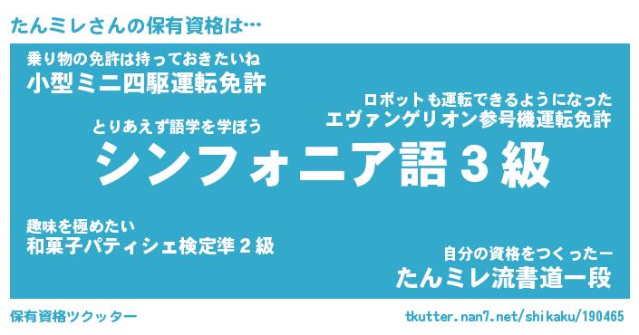 | ファンタジー風あだ名 | 『タンフェル』『エターナルタンミレー』 |