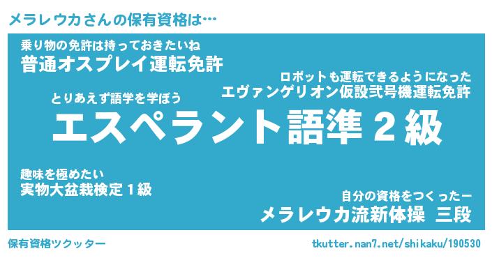 | ファンタジー風あだ名 | 『メラフェル』『エターナルメラレウカー』 |