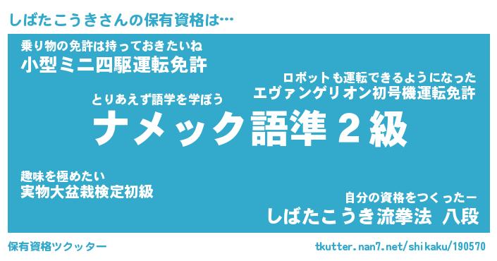 | ツイッター | しばたこうきさんのツイッターID『masyumaro_nyan』 |
