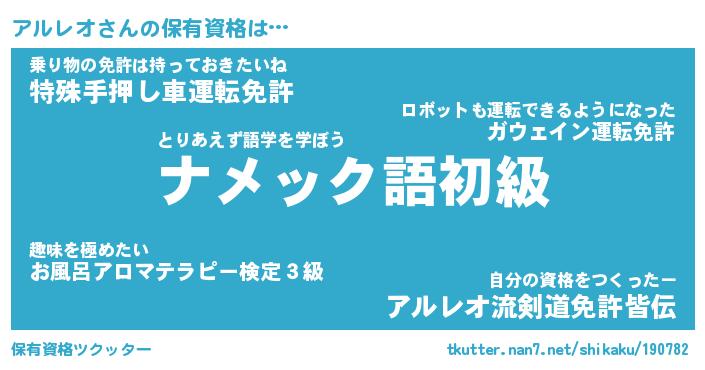 | 意味不明あだ名 | 『ペロリンアルレオ』『永久保存アルレオ』 |