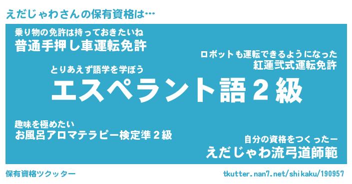 | 肩書あだ名 | 『えだじゃわ社長』『えだじゃわ大統領』 |