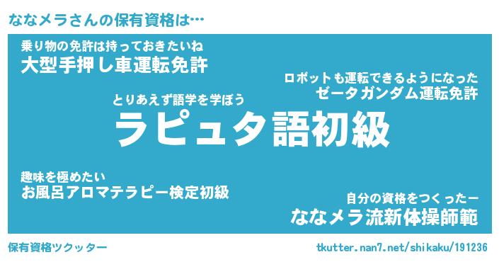 | 意味不明あだ名 | 『ペロリンななメラ』『永久保存ななメラ』 |