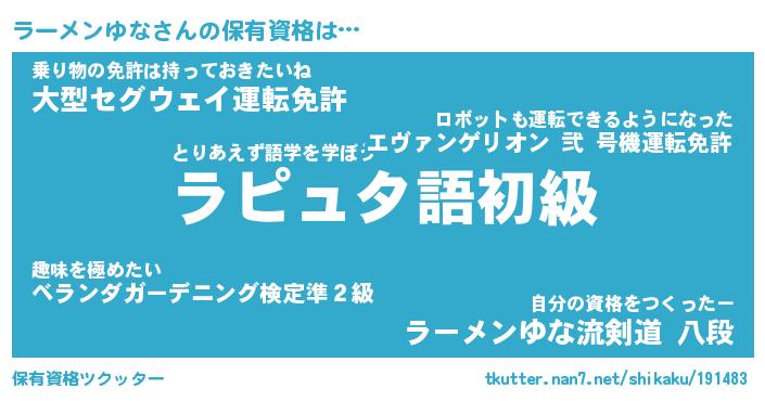 | 伝説のあだ名 | 『不死鳥のスナイパーラーメンゆな』 |