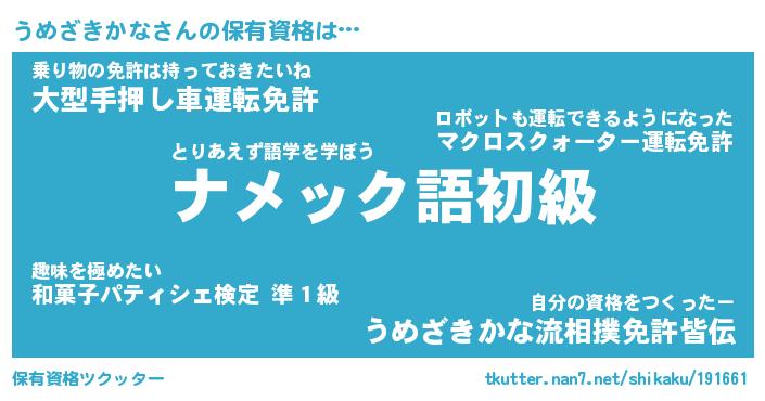 | ファンタジー風あだ名 | 『ウメフェル』『ファントムウメス』 |