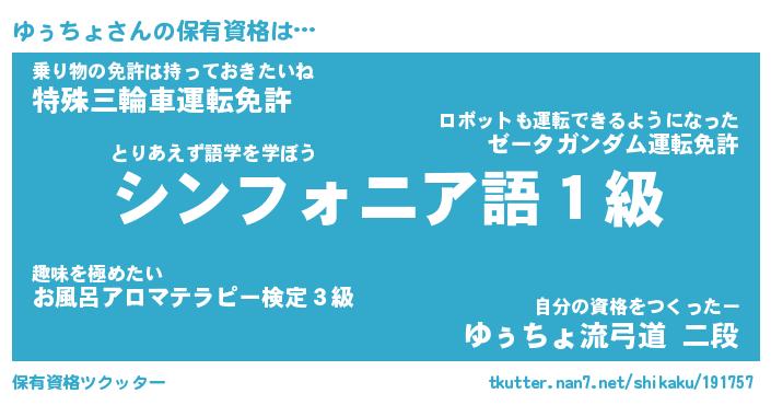 | ファンタジー風あだ名 | 『ユゥフェル』『エターナルユゥチョー』 |