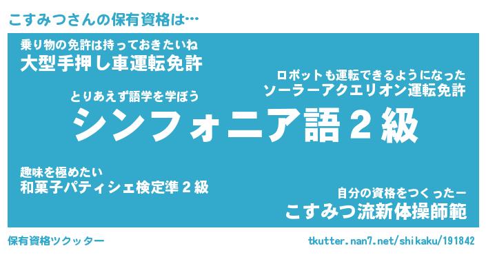 | ファンタジー風あだ名 | 『コスフェル』『エターナルコスミツー』 |