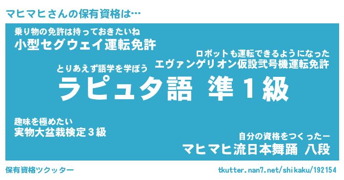 | ファンタジー風あだ名 | 『マヒフェル』『エターナルマヒマヒー』 |
