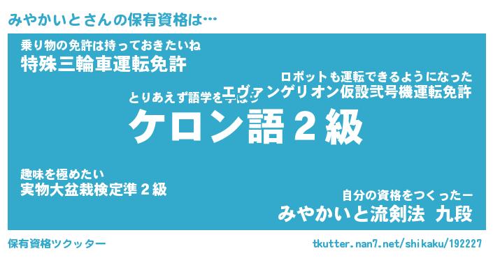 | ファンタジー風あだ名 | 『ミヤフェル』『エターナルミヤカイトー』 |