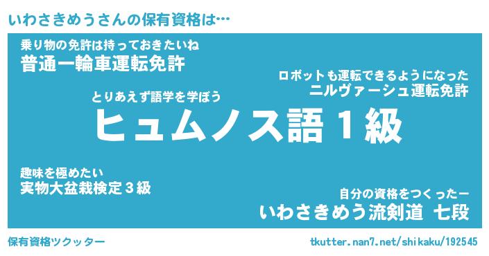 | ヒーロー風カッコイイあだ名 | 『スーパーイワサキメウ』『暗黒騎士イワ』 |