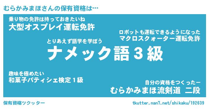 | 肩書あだ名 | 『むらかみまほ店長』『むらかみまほ担任』 |