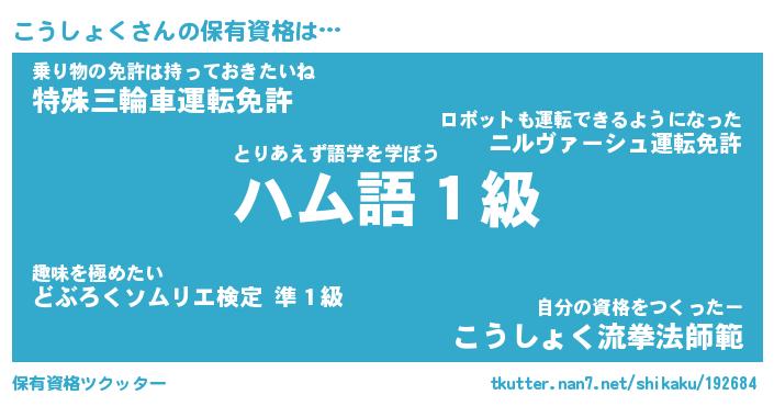 | 自動車の名前っぽいあだ名 | 『コウティマ』『コクア』『ヴィッコ』 |