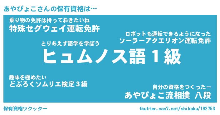| 伝説のあだ名 | 『封印されし竜騎士あやぴょこ』 |