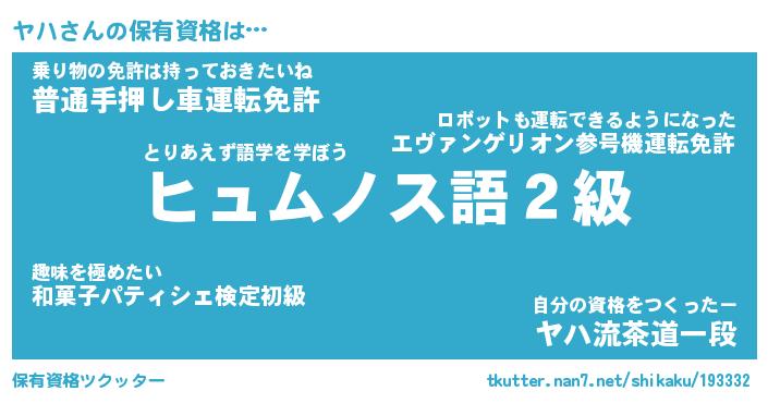 | ファンタジー風あだ名 | 『ヤハフェル』『エターナルヤハー』 |