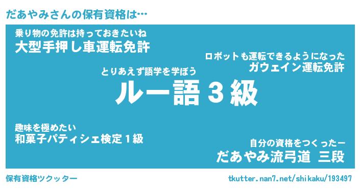 | ファンタジー風あだ名 | 『ダアフェル』『エターナルダアヤミー』 |