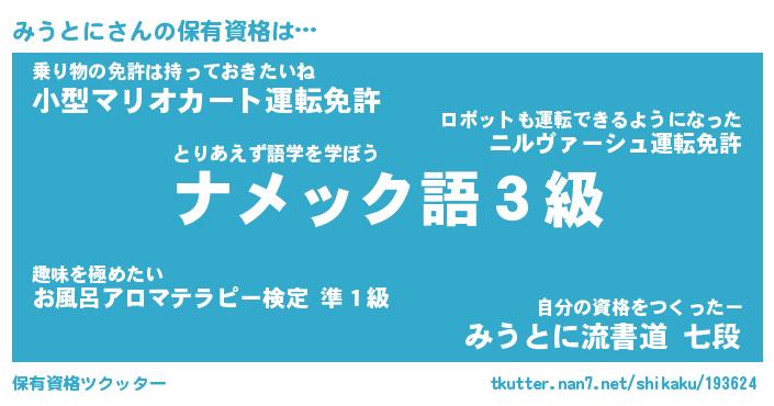 | 意味不明あだ名 | 『ペロリンみうとに』『永久保存みうとに』 |
