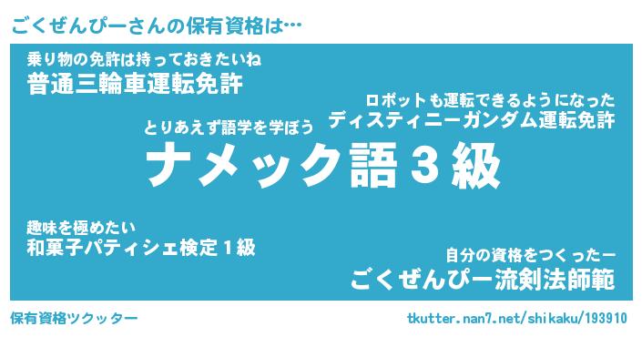 | 肩書あだ名 | 『ごくぜんぴー店長』『ごくぜんぴー班長』 |