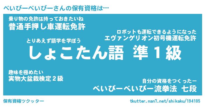 | 2回繰り返すあだ名 | 『べいべい』『べべいい』『おやおや』 |