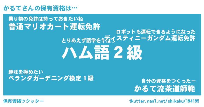 | 意味不明あだ名 | 『ペロリンかるて』『かるてフォーエバー』 |