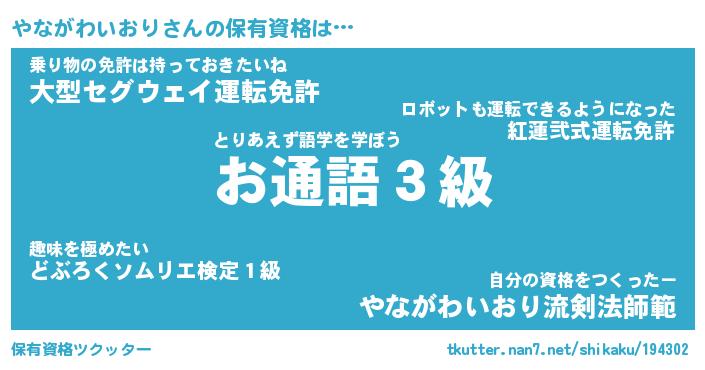 | ヒーロー風カッコイイあだ名 | 『スーパーヤナガワイオリ』 |