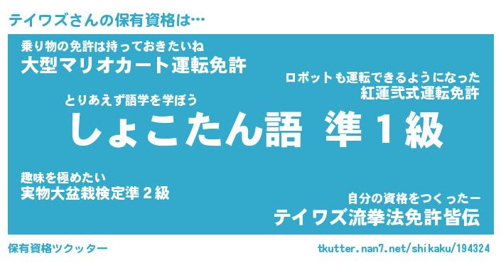 | ヒーロー風カッコイイあだ名 | 『スーパーテイワズ』『幻影騎士テイ』 |