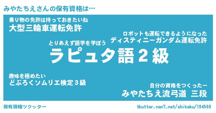 | ヒーロー風カッコイイあだ名 | 『スーパーミヤタチエ』『天弓騎士ミヤ』 |