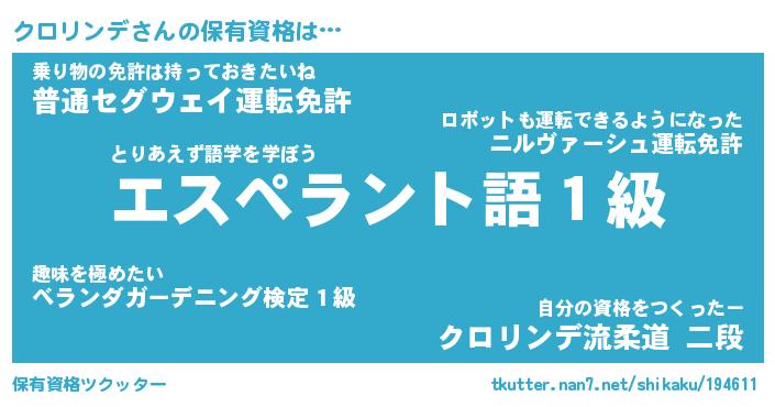 | ヒーロー風カッコイイあだ名 | 『スーパークロリンデ』『暗黒騎士クロ』 |